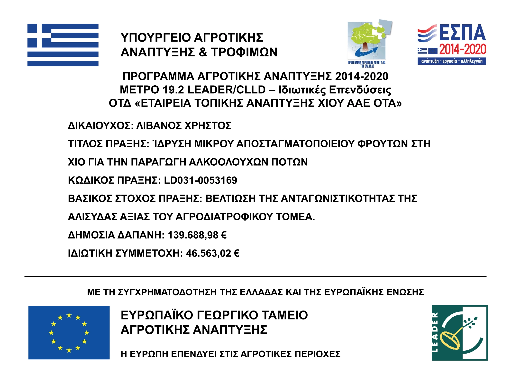 The blue color represents Greece, evoking the azure sky and the Aegean sea surrounding the island of Chios, while it symbolizes the natural beauty of this island.